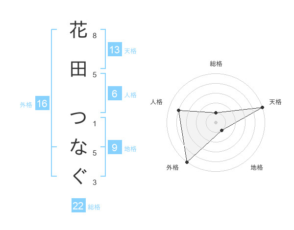 花田 つなぐさんを姓名の画数から五運を鑑定