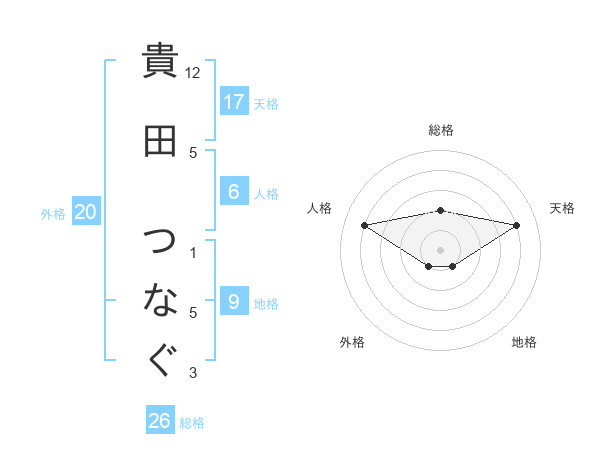 貴田 つなぐさんを姓名の画数から五運を鑑定