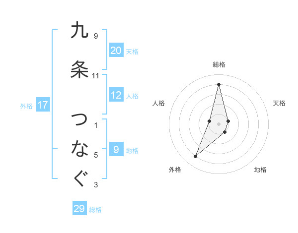 九条 つなぐさんを姓名の画数から五運を鑑定