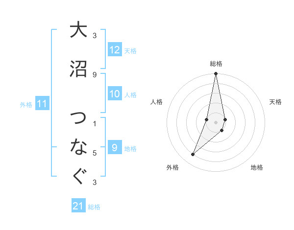 大沼 つなぐさんを姓名の画数から五運を鑑定