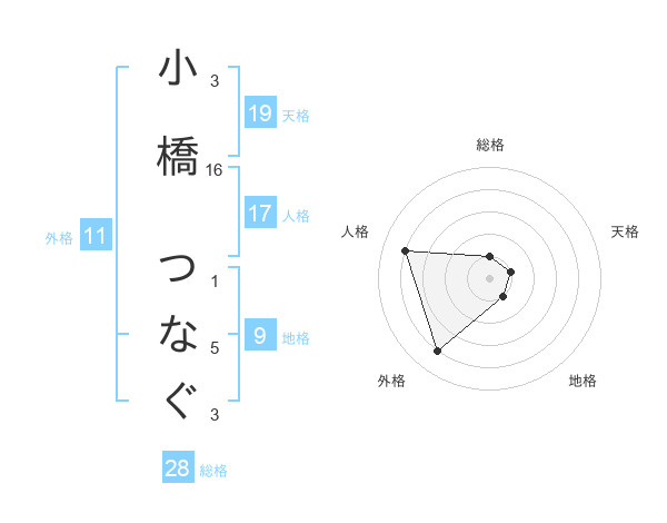 小橋 つなぐさんを姓名の画数から五運を鑑定