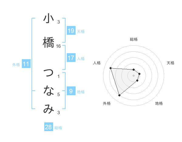 小橋 つなみさんの総格は28画の1点!