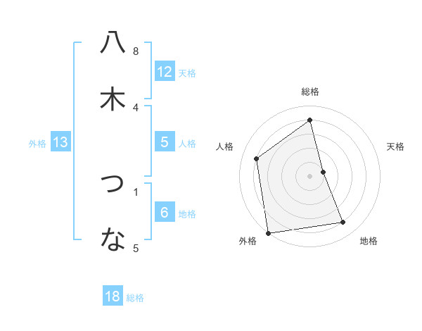 八木 つなさんの外格は13画の5点!