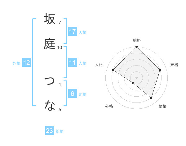 坂庭 つなさんを姓名の画数から五運を鑑定