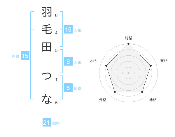 羽毛田 つなさんを姓名の画数から五運を鑑定
