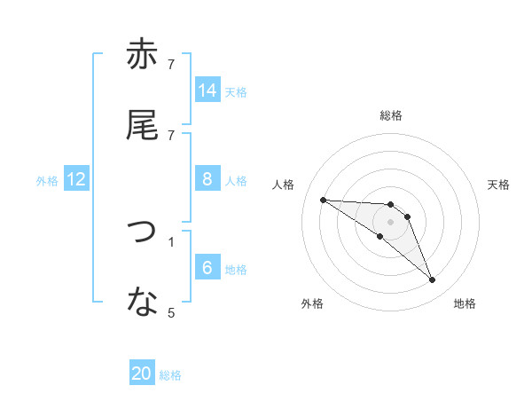 赤尾 つなさんを姓名の画数から五運を鑑定