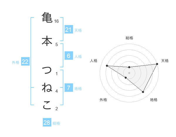 亀本 つねこさんの外格は22画の1点!