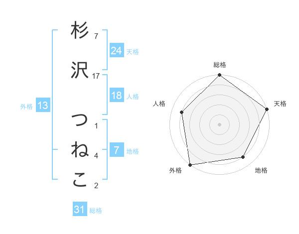 杉沢 つねこさんを姓名の画数から五運を鑑定