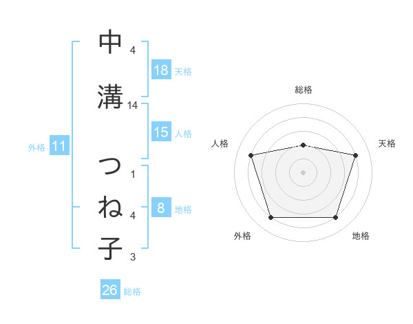 中溝 つね子さんを姓名の画数から五運を鑑定