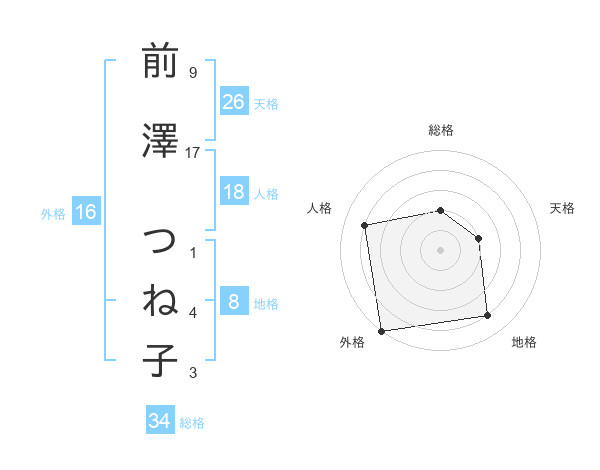 前澤 つね子さんの外格は16画の5点!