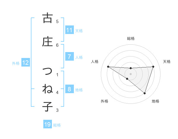 古庄 つね子さんの地格は8画の4点!