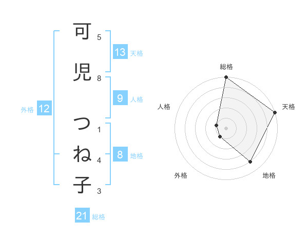 可児 つね子さんの天格は13画の5点!
