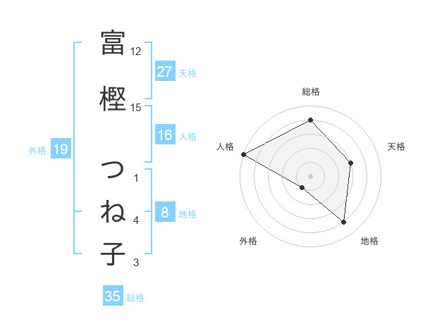富樫 つね子さんを姓名の画数から五運を鑑定