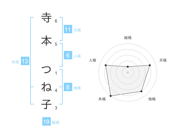 寺本 つね子さんを姓名の画数から五運を鑑定