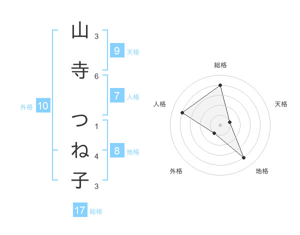 山寺 つね子さんを姓名の画数から五運を鑑定