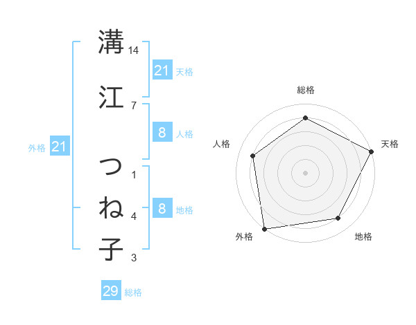溝江 つね子さんの天格は21画の5点!