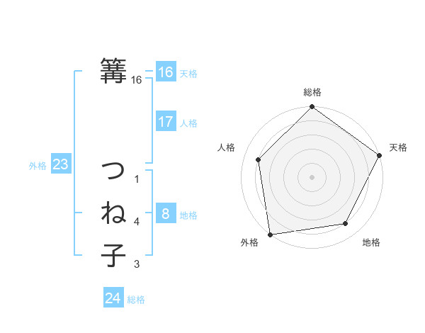 篝 つね子さんの天格は16画の5点!