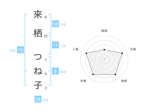 來栖 つね子さんを姓名の画数から五運を鑑定