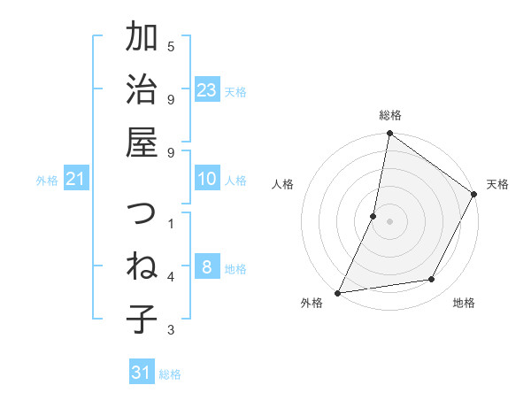 加治屋 つね子さんを姓名の画数から五運を鑑定