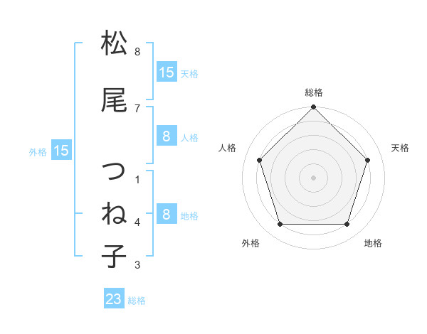 松尾 つね子さんの総格は23画の5点!
