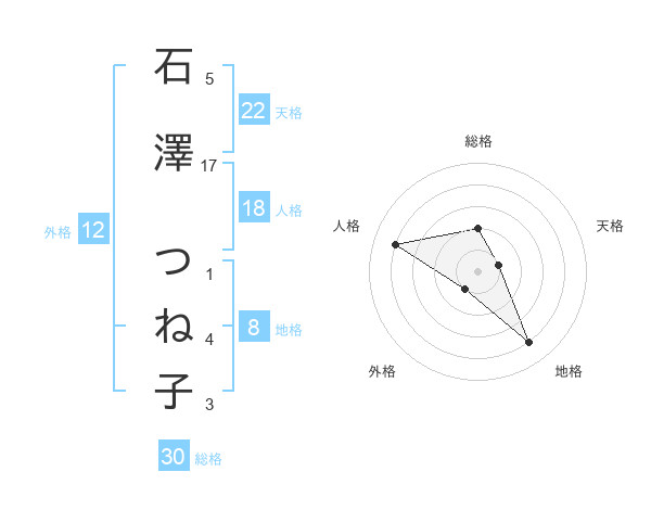 石澤 つね子さんを姓名の画数から五運を鑑定