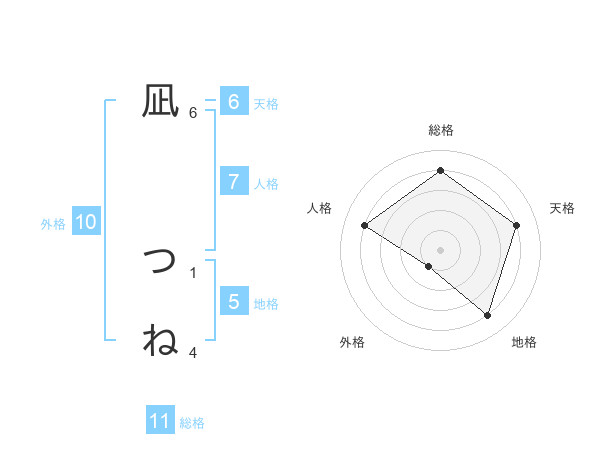 凪 つねさんの総格は11画の4点!