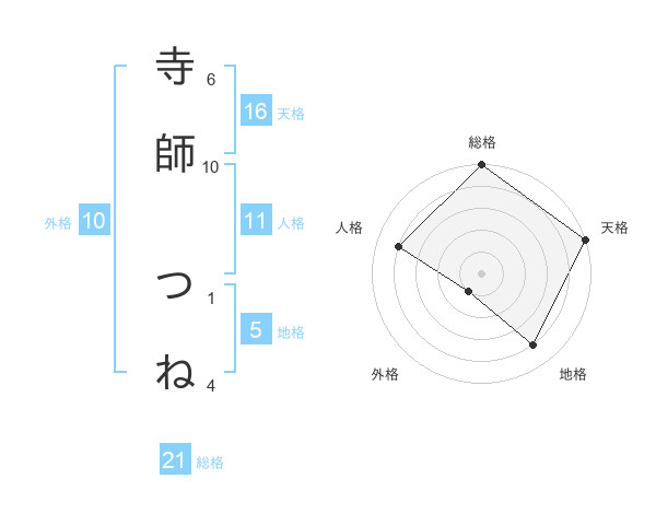寺師 つねさんの総格は21画の5点!