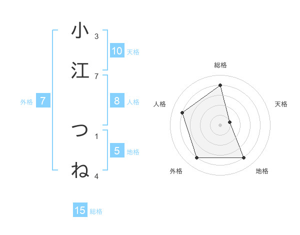 小江 つねさんの総格は15画の4点!
