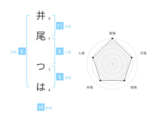 井尾 つはさんの天格は11画の4点!