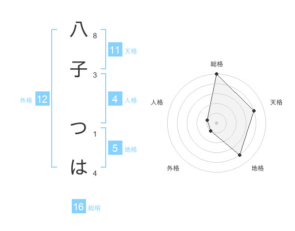 八子 つはさんの総格は16画の5点!