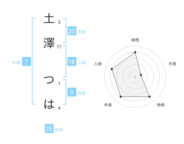 土澤 つはさんの総格は25画の4点!
