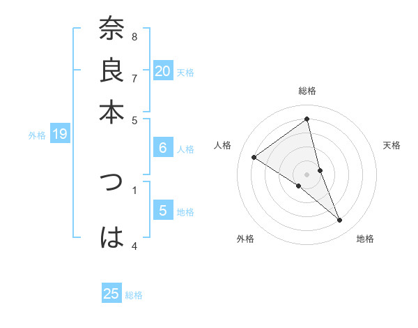 奈良本 つはさんの総格は25画の4点!