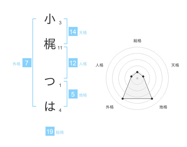 小梶 つはさんの外格は7画の4点!