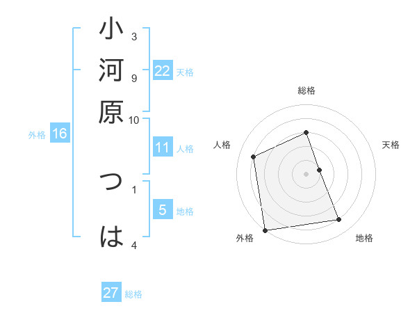 小河原 つはさんの外格は16画の5点!