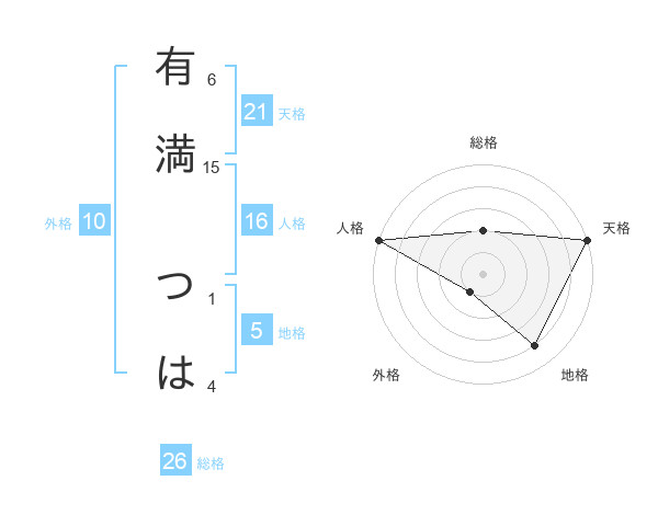 有満 つはさんの総格は26画の2点!