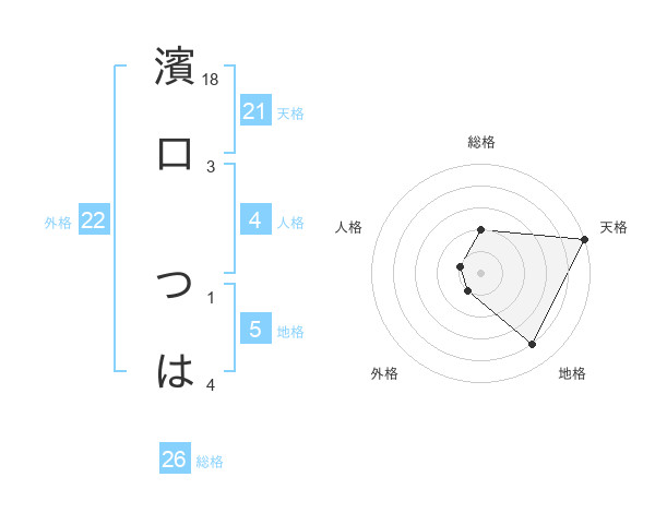 濱口 つはさんの天格は21画の5点!