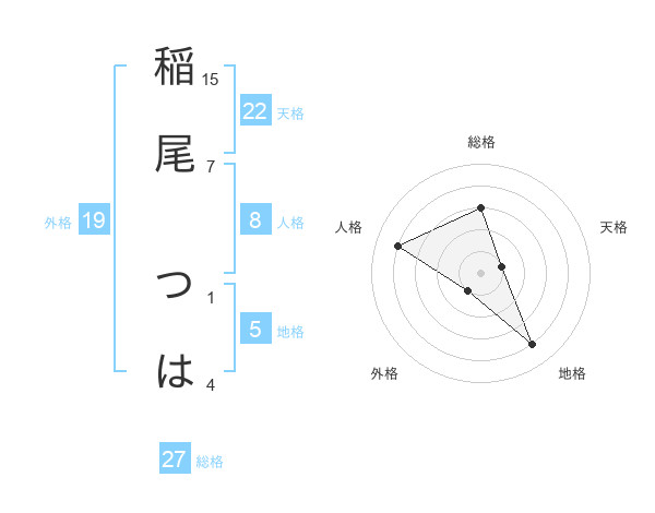 稲尾 つはさんを姓名の画数から五運を鑑定