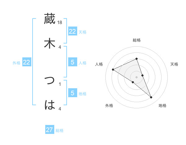 蔵木 つはさんを姓名の画数から五運を鑑定