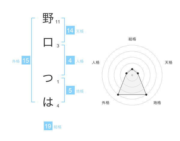 野口 つはさんの地格は5画の4点!
