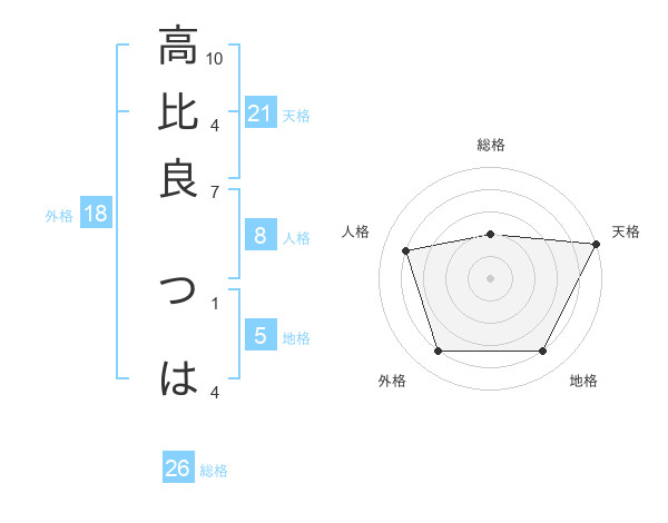 高比良 つはさんの天格は21画の5点!