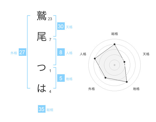 鷲尾 つはさんの天格は30画の2点!