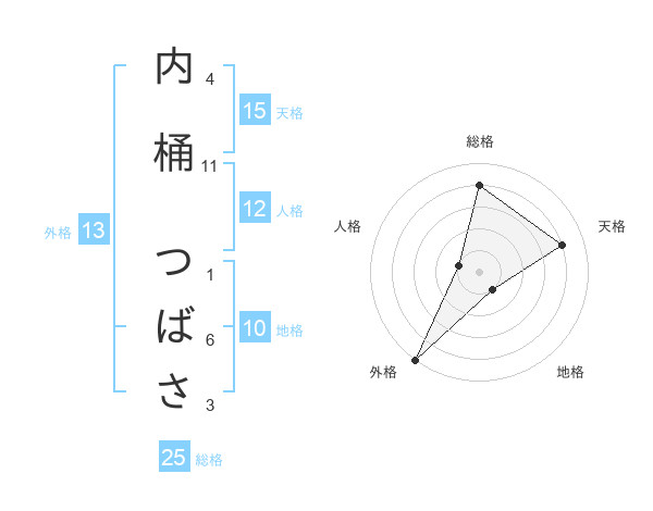 内桶 つばささんの総格は25画の4点!
