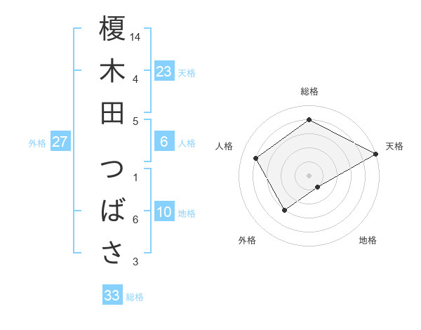 榎木田 つばささんを姓名の画数から五運を鑑定