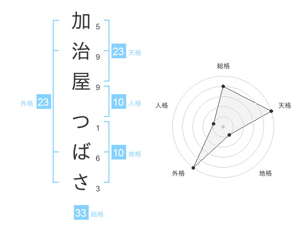 加治屋 つばささんを姓名の画数から五運を鑑定