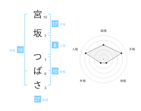 宮坂 つばささんを姓名の画数から五運を鑑定