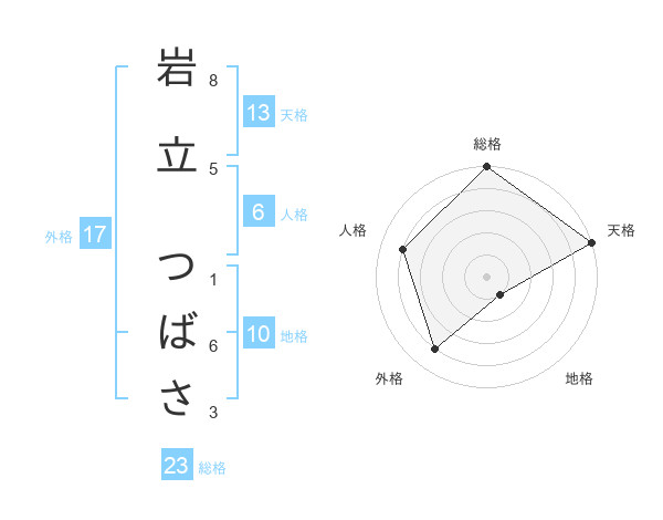 岩立 つばささんの天格は13画の5点!
