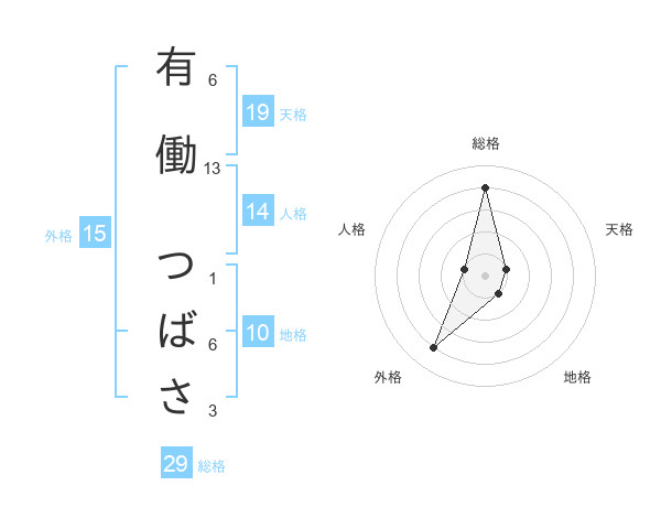 有働 つばささんの総格は29画の4点!