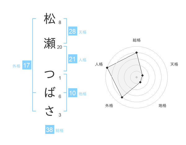 松瀬 つばささんを姓名の画数から五運を鑑定