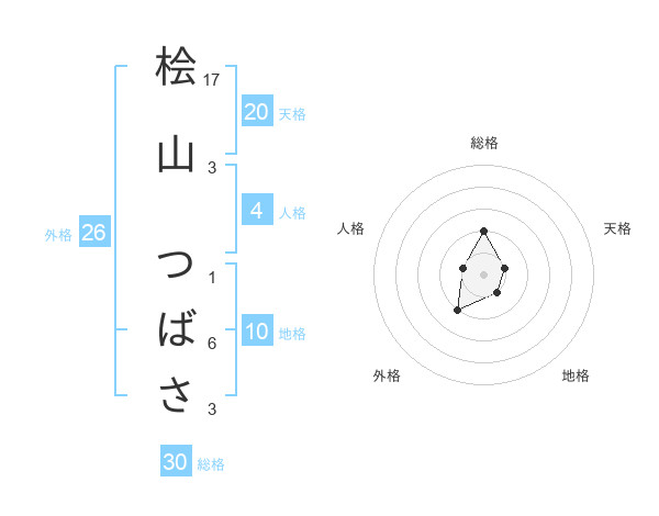 桧山 つばささんの総格は30画の2点!