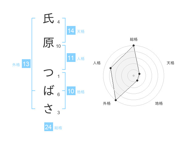 氏原 つばささんの天格は14画の1点!
